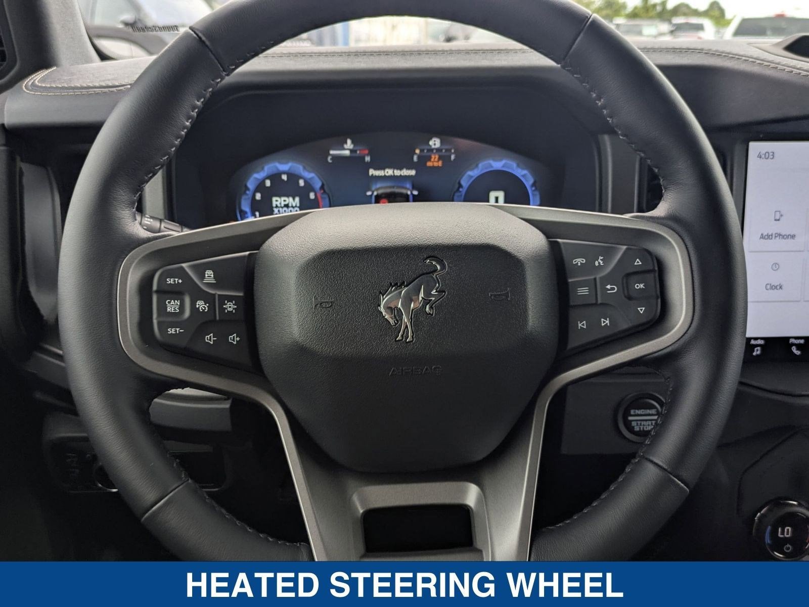 - EQUIPMENT GROUP 334A LUX PACKAGE -inc: Heated Steering Wheel Rear Parking Sensors Power Outlet - Back Side of Center Floor Console Dr & Pass Illuminated Sliding Visor Vanity Mirrors Evasive Steering Assist Information on Demand Panel Dual-Zone Electronic Automatic Temperature Control air conditioning Ford Co-Pilot360 Enables compatibility w/FordPass performance app w/off-road navigation Auto High-Beam Headlamps Pre-Collision Assist w/Automatic Emergency Braking pedestrian detection forward collision warning and dynamic brake support Blind Spot Information System (BLIS) Cross-Traffic Alert Rear View Camera backup assist grid lines Lane-Keeping System Lane-Keeping Alert Lane-Keeping Aid and Driver Alert Ambient Footwell Lighting 2-Door Intelligent Access w/Lock/Unlock Intelligent Access will also lock/unlock the swing gate Dual Smart Charging USB Ports Front Row Heated Seats Adaptive Cruise Control Radio: B&O Sound System by Bang & Olufsen 12 speakers includi